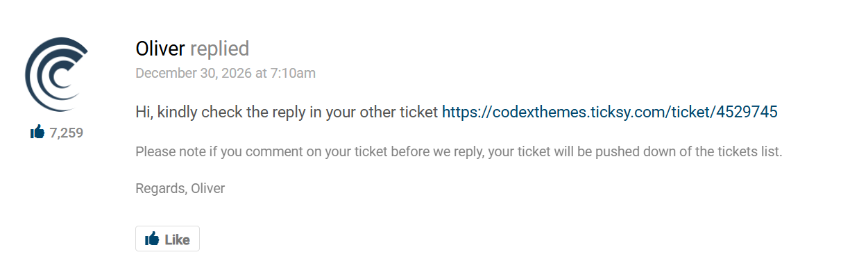 Hi, kindly check the reply in your other ticket https://codexthemes.ticksy.com/ticket/4529745